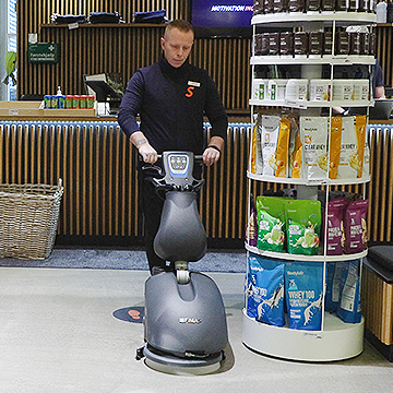 Hvordan gør vi gulvet rent med den store gulvvaskemaskine?