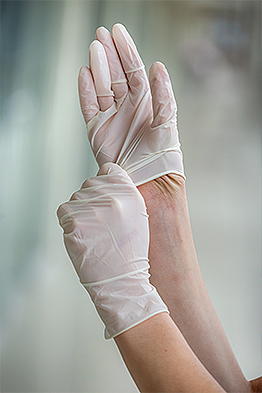 Hænderne skal være rene og tørre, når handskerne tages på. Efter handskebrug skal hænderne enten desinficeres eller vaskes - det er der flere grunde til: