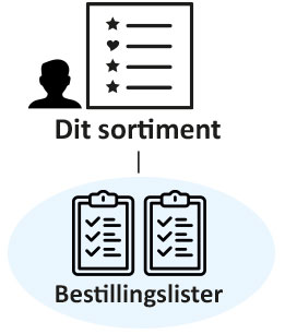 Organisere dine varer fra dit sortiment på forskellige bestillingslister, som passer ind i din hverdag og efter din virksomheds behov. Du kan selv oprette og navngive dem som du har lyst til, så du opnår det bedst mulige overblik over dine køb.