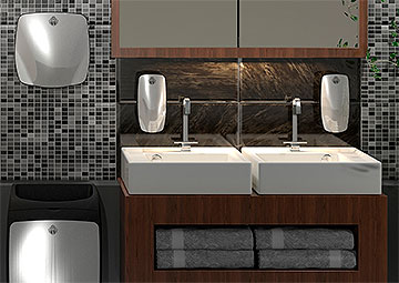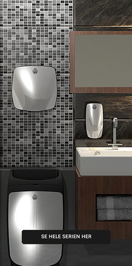Designet er stilfuldt og tidløst, og passer ind i ethvert hygiejnemiljø såsom skoler, plejehjem, kontorer, storkøkkener, hospitaler, offentlige toiletter og værksteder. De er fremstillet i robust ABS plast, der ikke misfarves og er lette at rengøre og betjene.
